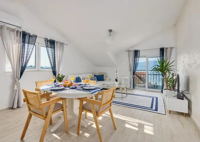 Boasting a location 2.9 km from Plaza Krasici Public Beach, the 1-bedroom Sapore Di Mare Apartment Tivat villa provides a terrace with sea views. Featuring bicycle and car rentals, this beachfront holiday home invites guests to visit Lustica, situated about a 10-minute drive away.